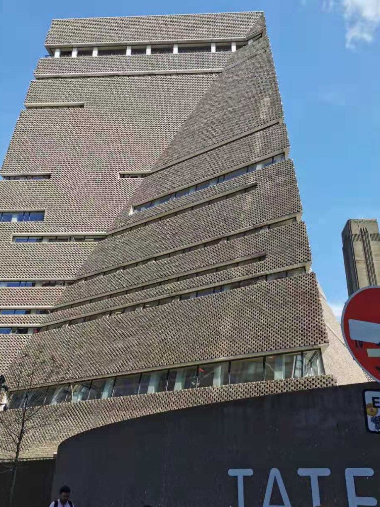 23rd Aug is the first time I arrived in London after studying in the UK. London is a very busy and fashion city. Pedestrians and a variety of illustrations and posters are everywhere on the street. The tutors arranged for us to visit Tate Modern. Tate Modern’s building is high and modern. when you saw this building, you will think it is a very hard building because it is a honeycomb-like structure built of bricks.